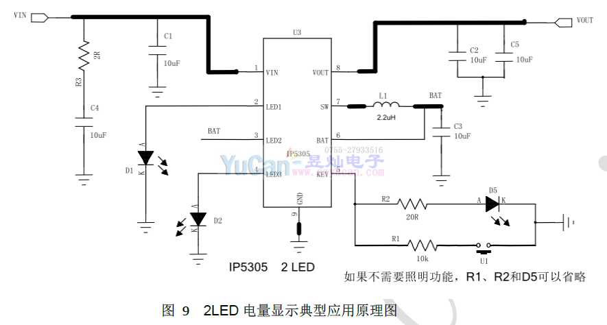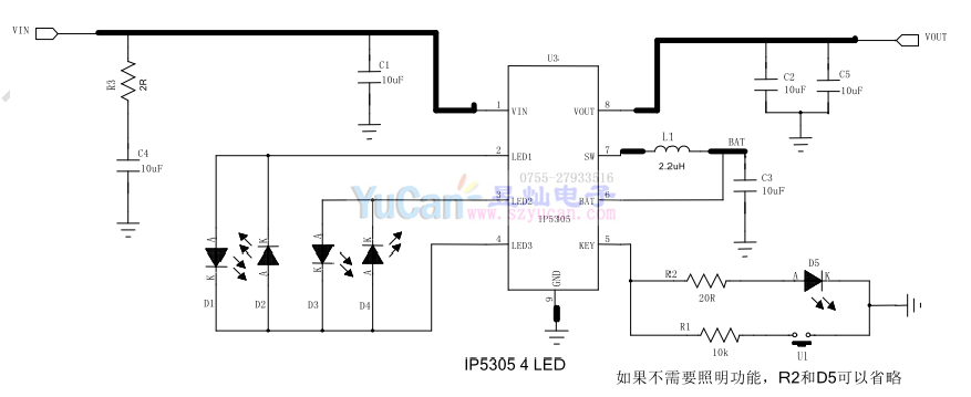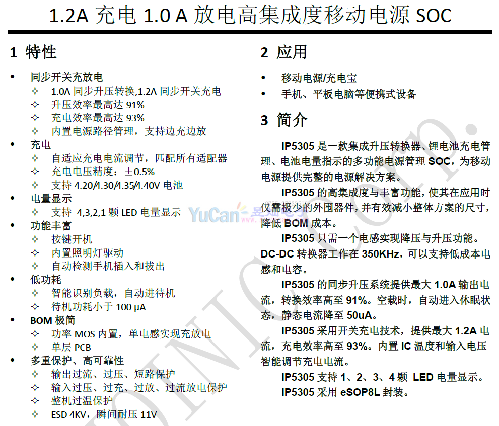 IP5305系列 SOP-8集充电 放电 1-4棵LED多种电量指示模式 的多合一移动电源专用芯片 充电1A 放电1.2A