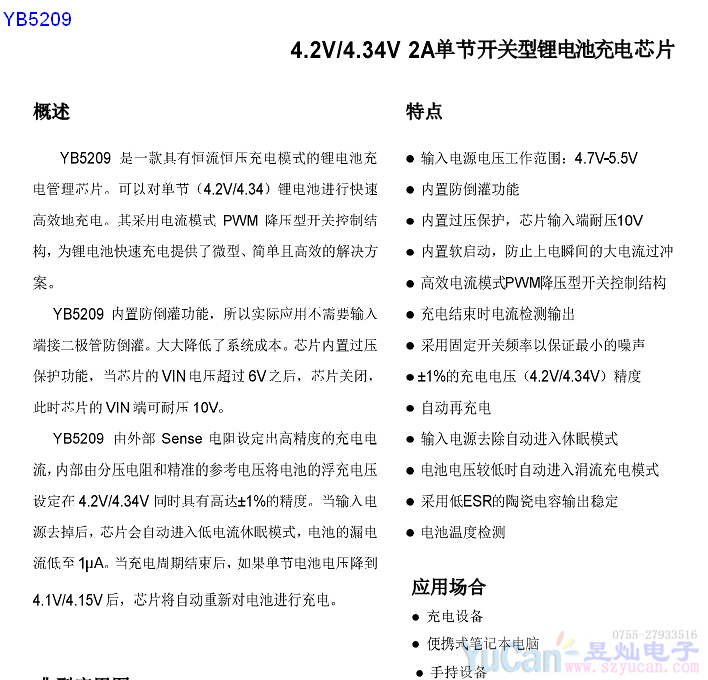YB5209A SOP-8 4.2V 2A