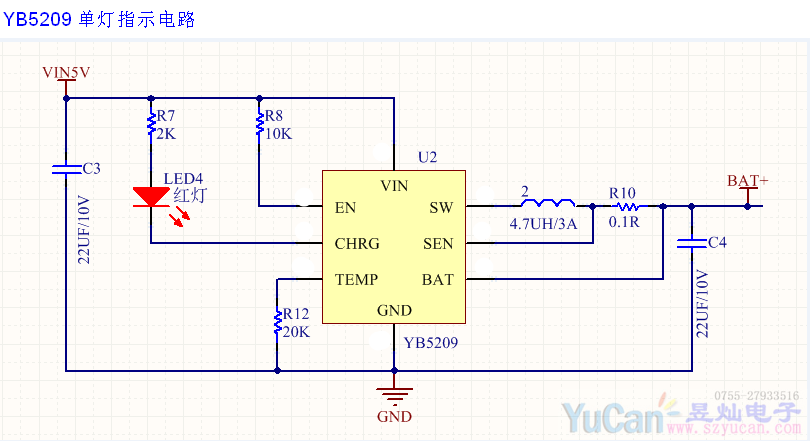 YB5209 SOP8 内置mos 开关式单节 4.2V 4.35V锂电充电IC 最大2A充电电流