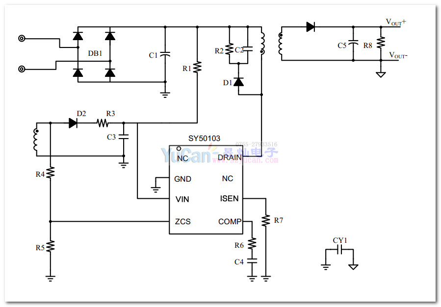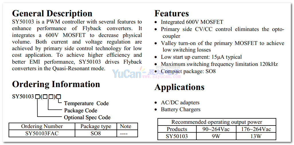 SY50103 内置MOS管 高效率5V/1.8A AC-DC控制器