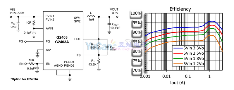 G2403系列 锂电输入2.5-6V 输出最低电压0.6V 电流4-5A的DC-DC高效低工作电压降压芯片