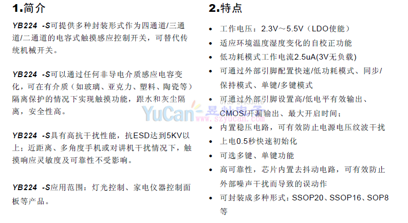 YB224SB SSOP-16 触摸感应IC(四通道)