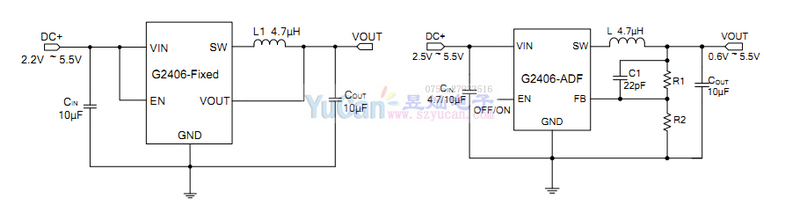 G2406是高效同步PWM降压型DC/DC转换器,工作电压范围为2.2V至5.5V G2406适用于单节锂电池供电应用。