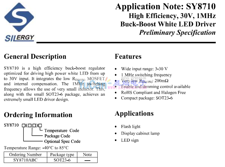 SY8710 Buck-Boost 2A LED Lighting Driver