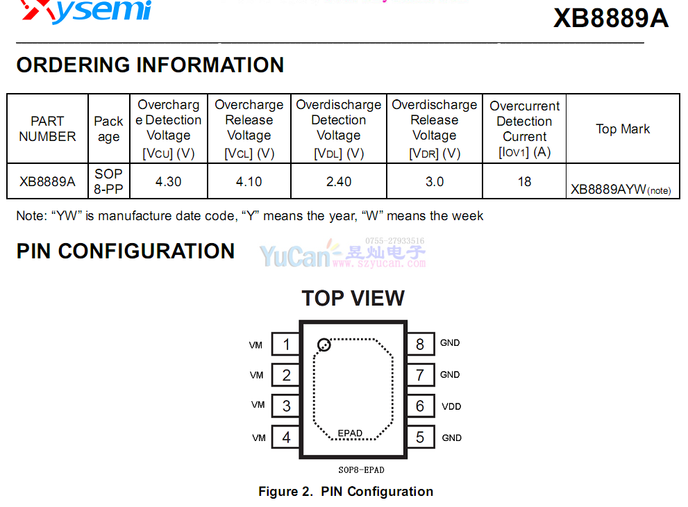 XB8889A SOP-8 集锂电保护与mos二合一芯片 具18A电流mos