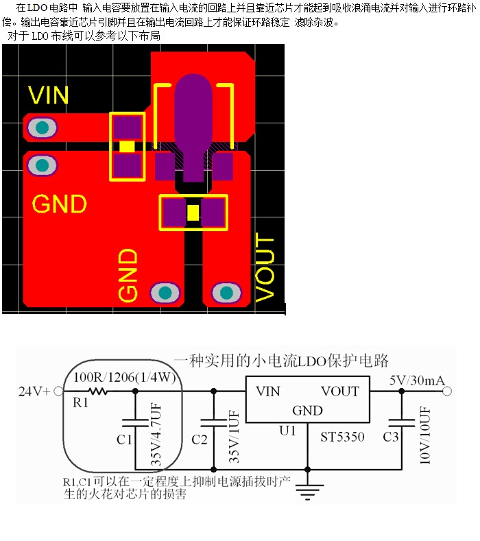 LDO的在实际电路中使用很多,LDO的输入端一般为DC电源,在上电及下电时容易出现火花和浪涌电压很容易损坏LDO,严重的可能会导致后端芯片损坏。