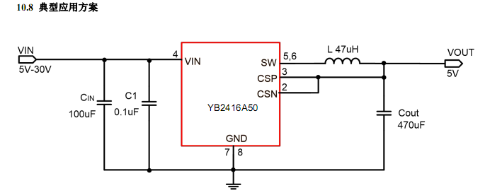 YB2416内置线电压补偿,可通过调节FB端口的分压电阻阻值来实现.YB2416不仅可实现单芯片降压电源管理方案,还可以与QC2.0/QC3.0识别芯片构成快速充电电源管理方案。另外,芯片包含多重保护功能:过温保护,输出短路保护和输入欠压/过压保护等。YB2416采用SOP8的标准封装。
