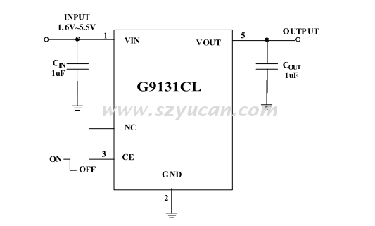 昱灿 G9131CLA33L5M SOT23-5 LDO线性降压 6V 3.3V 300mA